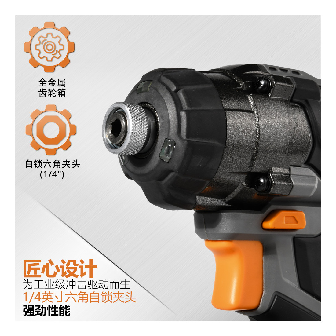 - مزود بظرف سداسي بقياس ¼ بوصة لتغيير سريع وسهل للملحقات.