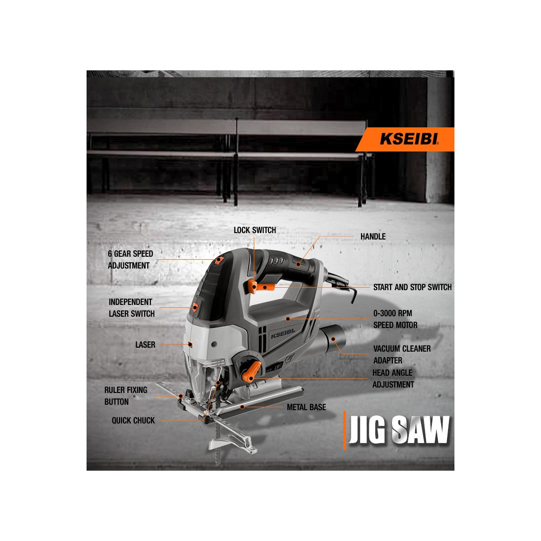 مع محرك بقوة 800 واط ، يمكن لهذا المنشار أن يولد طاقة تصل إلى 3000 ضربة في الدقيقة لأداء قطع أعلى