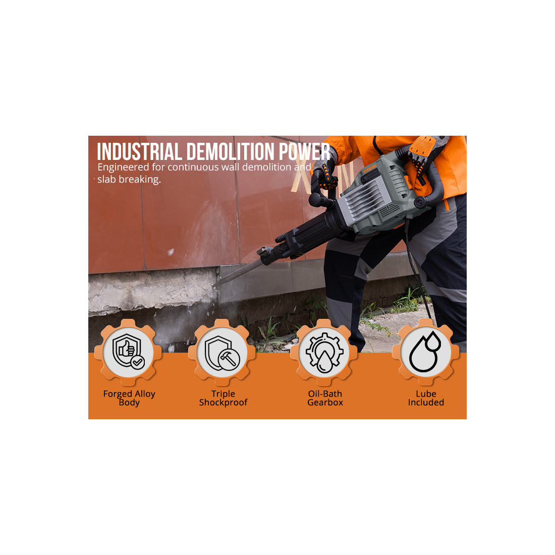 - Vielseitig einsetzbar für Abbrucharbeiten, Renovierungen und schwere Bauprojekte.
