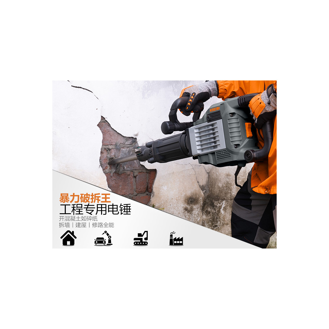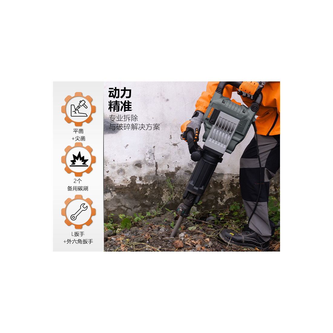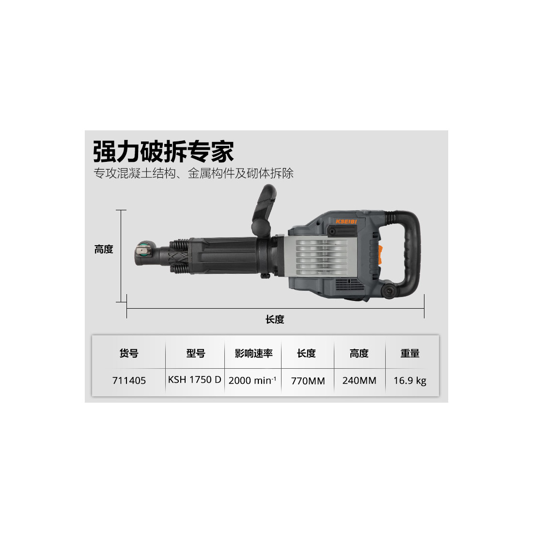 - Robustes Design, ideal für anspruchsvolle Abbrucharbeiten in Bau- und Industrieumgebungen.