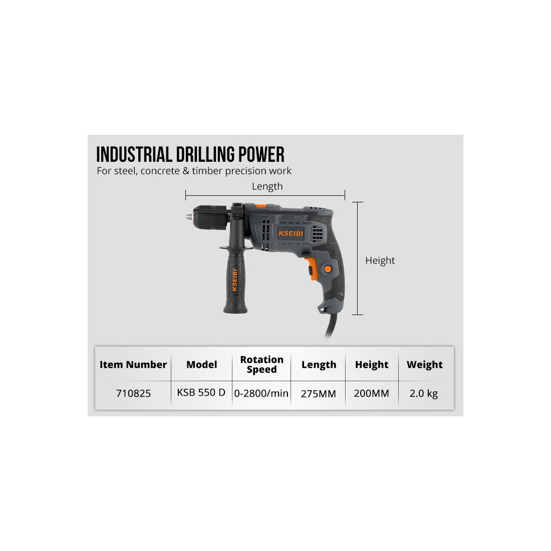 Diese Schlagbohrmaschine eignet sich ideal für Handwerker, Bauprofis und industrielle Anwendungen, ist aber auch eine zuverlässige Wahl für anspruchsvolle Heimwerker. Mit ihrer langlebigen Konstruktion und bewährten KSEIBI-Qualität ist die KSB 580 D ein Werkzeug, das selbst bei intensiver Nutzung verlässlich bleibt.