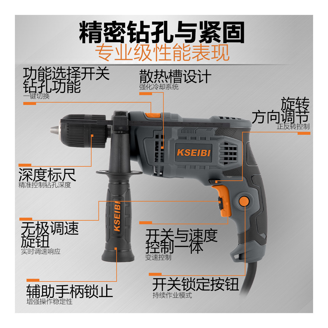 Die KSEIBI KSB 580 D Schlagbohrmaschine vereint Kraft, Präzision und Vielseitigkeit in einem kompakten Design. Mit einer Leistung von 580 Watt und einem 13-mm-Schnellspannbohrfutter bietet sie die perfekte Balance zwischen Leistung und Benutzerfreundlichkeit. Die variable Drehzahl- und Schlagzahlregelung ermöglicht Ihnen, unterschiedlichste Materialien – von Holz über Metall bis hin zu Mauerwerk – effizient zu bearbeiten.