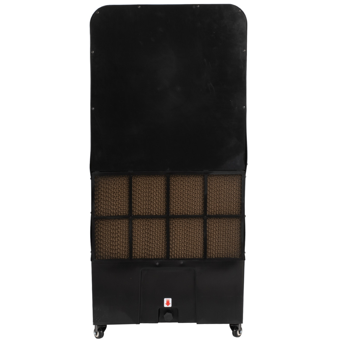 Dieser mobile Verdunstungskühler liefert starke Luftbewegung und spürbare Abkühlung ohne feste Klimaanlage. Über großflächige Kühlmatten wird Wasser aus dem 70‑Liter‑Tank verdunstet – ideal, um die gefühlte Temperatur zu senken und Staub zu binden.