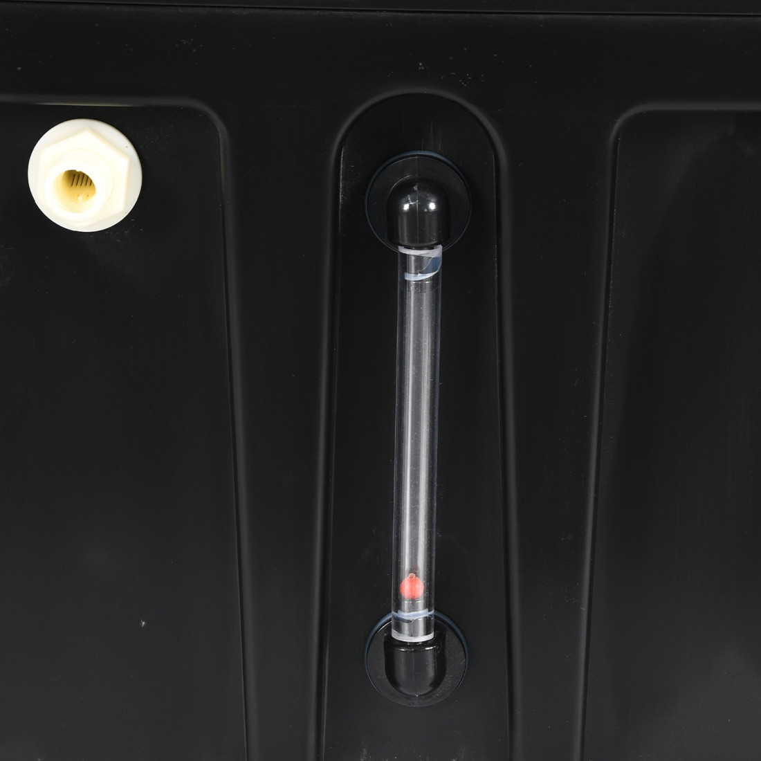Das robuste Kunststoffgehäuse mit frontseitigem Schutzgitter ist für den Dauereinsatz ausgelegt, die leichtgängigen Rollen erleichtern den Transport zwischen Arbeitsbereichen. Die Bedienung erfolgt direkt am Gerät über klare Drehregler für Luftstrom und Wasserumlauf; verstellbare Lamellen lenken den Luftstrom dorthin, wo er gebraucht wird. Mit nur 350 W arbeitet der Kühler energieeffizient bei langen Laufzeiten pro Tankfüllung.