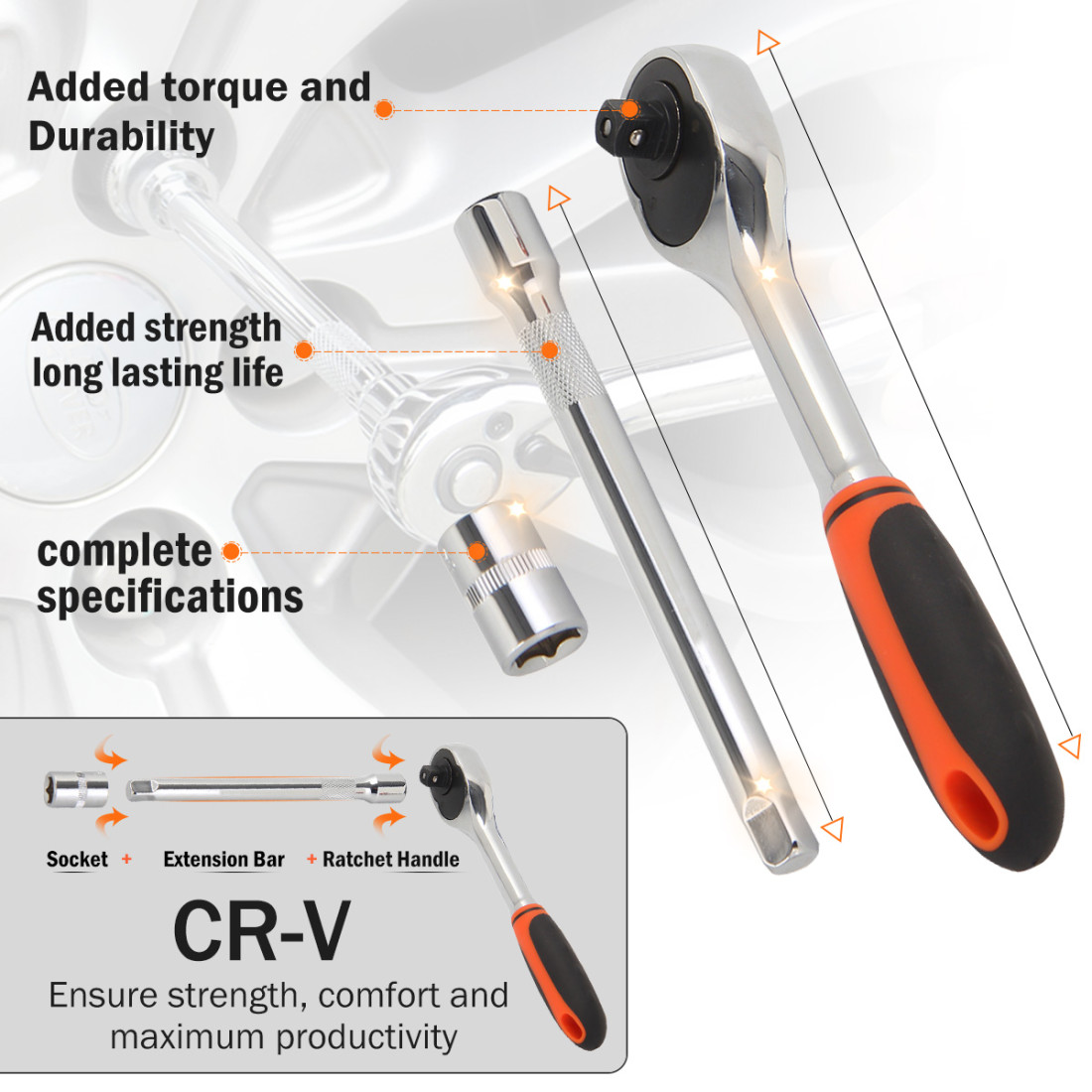 teiliges Steckschlüsselsatz-Set aus hochwertigem Chrom-Vanadium-Stahl für maximale Langlebigkeit.