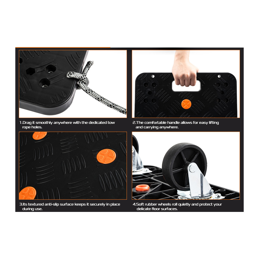 Der **Kunststoff Wagen** von KSEIBI ist die perfekte Lösung, um schwere oder unhandliche Gegenstände mühelos zu transportieren. Mit vier leichtgängigen, um 360° drehbaren Rollen bietet er maximale Beweglichkeit, selbst in engen Räumen. Das robuste Kunststoffmaterial sorgt für eine langlebige und belastbare Basis, die auch bei regelmäßiger Nutzung ihre Stabilität bewahrt.