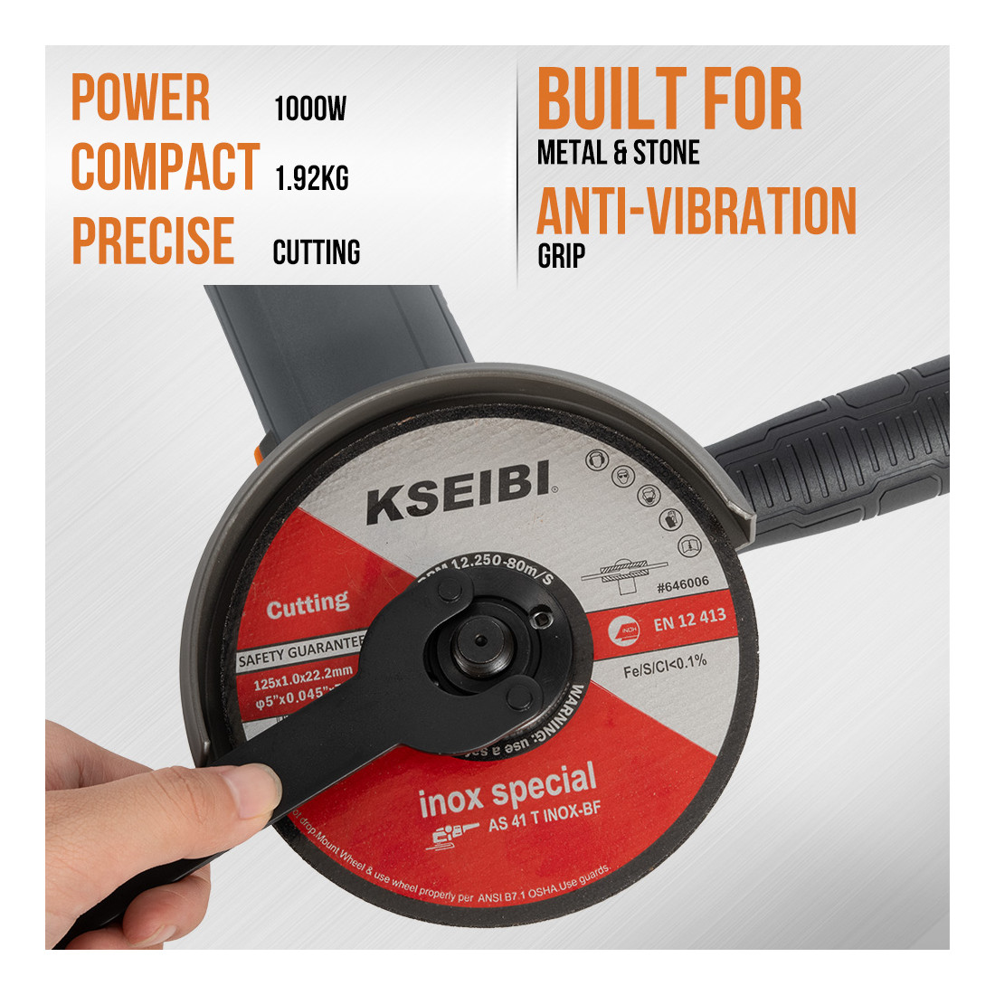 Γωνιακός τροχός KWS 100-125 V (125 mm, μεταβλητή ταχύτητα, 1000 W) — Αξιοπιστία στην εργασία | Κατασκευασμένο για απαιτητικές εφαρμογές