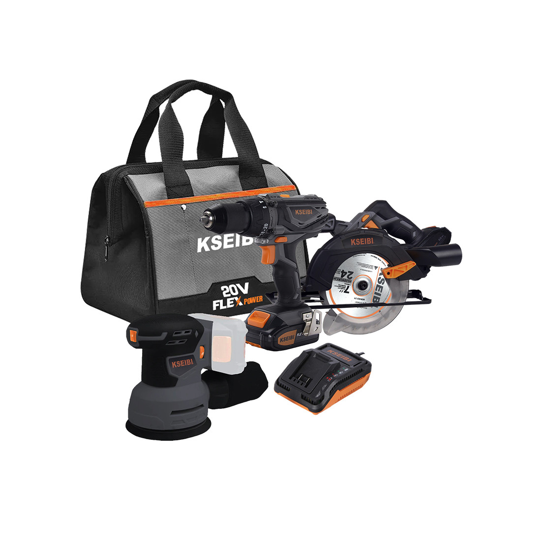 The KCB 20V 3A-202, 3-Tool 20V Max Power Tool Combo Kit by KSEIBI delivers the versatility and performance professionals and tradespeople need for demanding tasks. Combining a hammer drill, circular saw, and random orbital sander, this kit is tailored for precision drilling, efficient cutting, and smooth surface finishing across a wide range of materials.