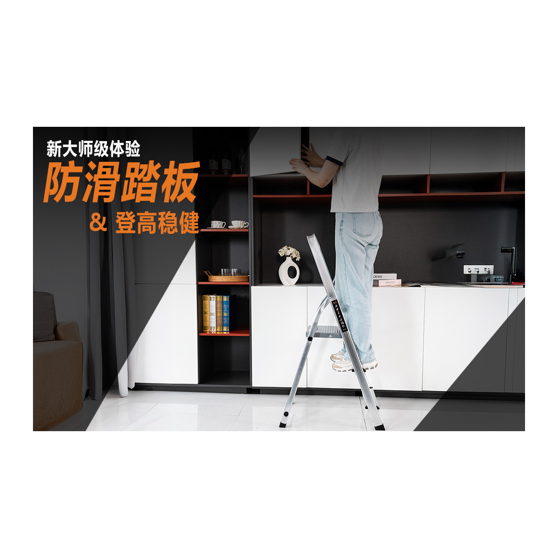 The KSEIBI Household Aluminum Ladder provides stable, everyday access for tasks like painting, changing bulbs, stocking shelves, and routine maintenance. Built from lightweight, corrosion‑resistant aluminum, it’s easy to carry yet rigid under load. Wide, ribbed steps and a large standing platform offer confident footing, while the high handrail supports balance when reaching overhead. Non‑marring, slip‑resistant feet protect floors and keep the ladder planted on smooth surfaces. A locking spreader bar prevents wobble during use and folds compactly for storage.