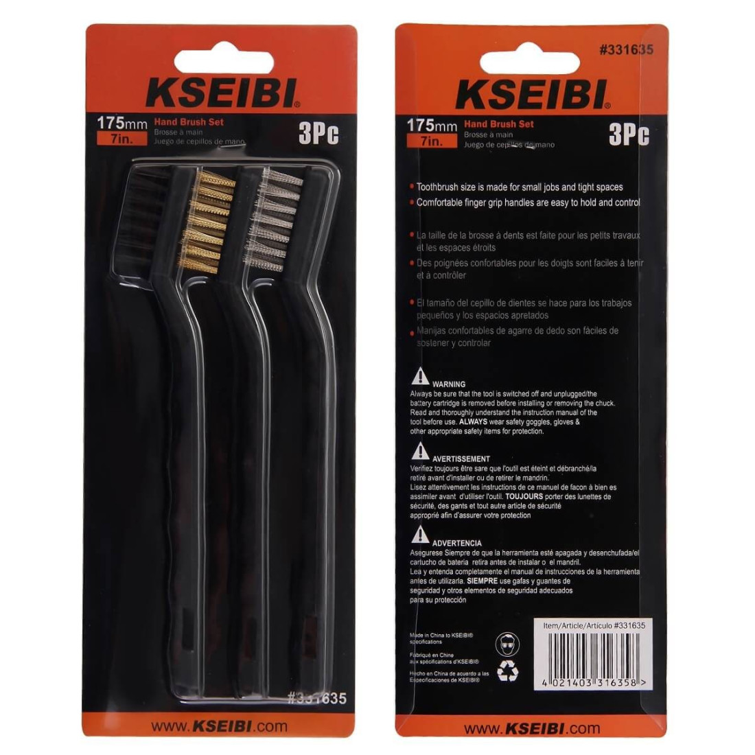 KSEIBI Plastic Hand Brush Set 3-Pc