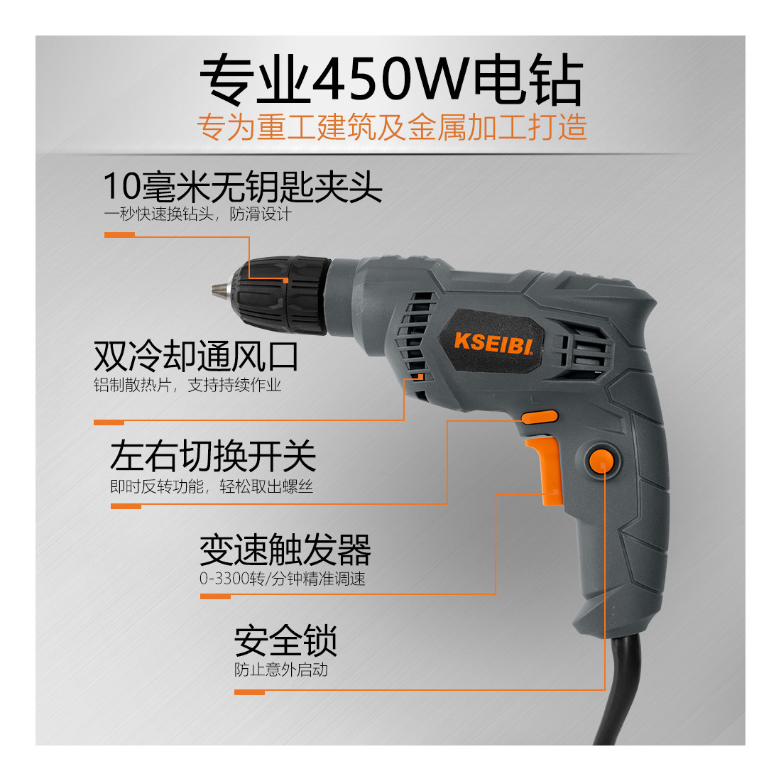 KSEIBI Tools KBM 450 S, Electric Drill, 10mm Keyless, 450W