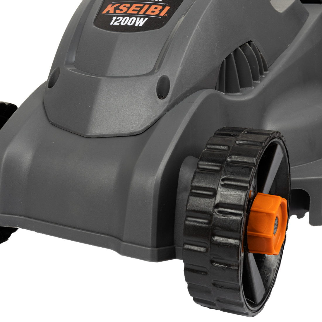 The KSEIBI Electric Lawn Mower, 1200W, is engineered to deliver efficient and precise grass cutting with minimal effort. Powered by a reliable 1200W motor, it ensures consistent performance across various lawn types, making it a dependable choice for maintaining small to medium-sized outdoor spaces.