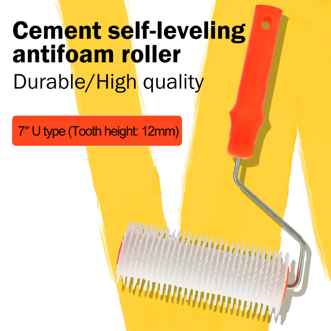Equipped with a durable plastic handle, the roller is lightweight yet sturdy, offering a comfortable grip for extended use. The thoughtfully designed spikes provide consistent performance, making it a valuable tool for construction professionals, flooring specialists, and anyone involved in large-scale surface preparation.