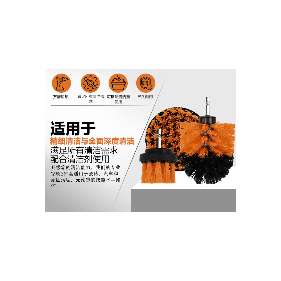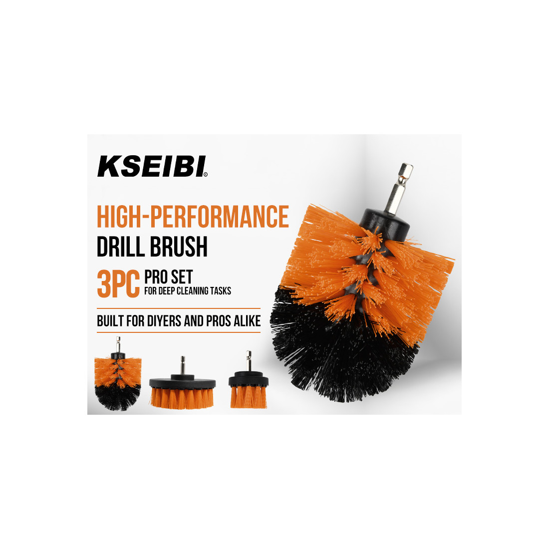 KSEIBI’s Drill Cleaning Brush Set turns any cordless drill into a fast, effective scrubber for tough jobs. The 3-piece kit covers corners, flats, and tight spots: a domed brush for curved surfaces and grout lines, a flat round for floors and tiles, and a short-detail brush for edges and fixtures.