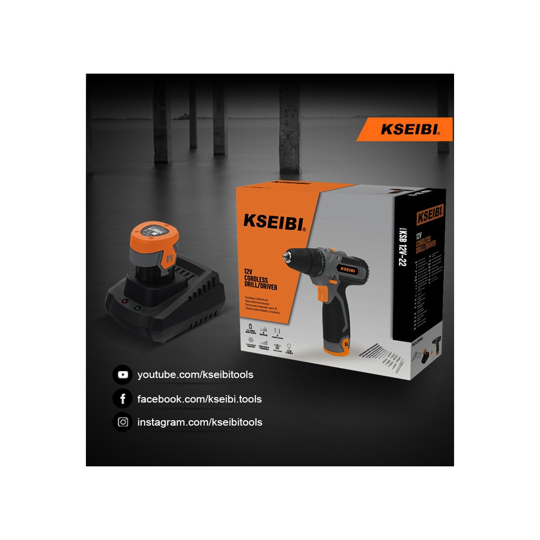 KSEIBI 12V Cordless Drill Driver, 10mm, 2 Batteries