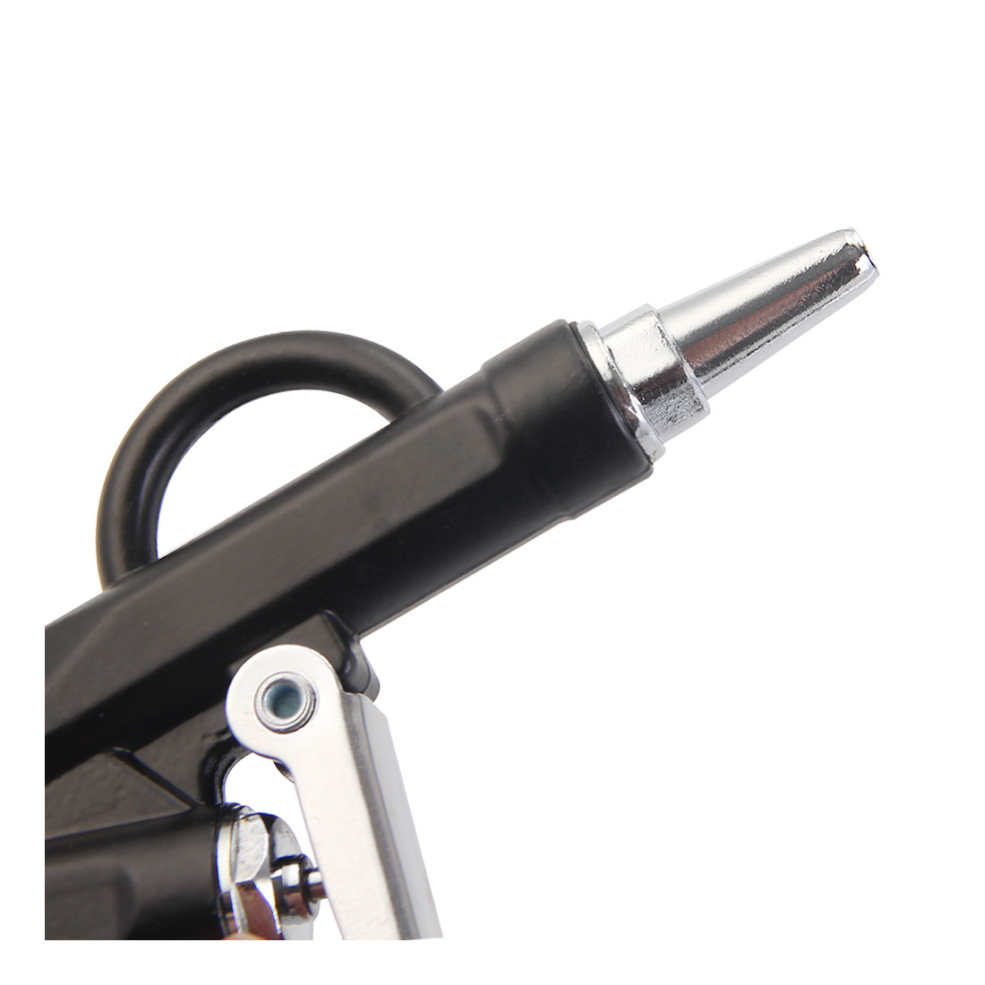 La pistola de aire *classic-c* de KSEIBI es una herramienta práctica y confiable diseñada para tareas de limpieza mediante el soplado de aire. Fabricada con una aleación de aluminio resistente, combina durabilidad con ligereza, lo que facilita su manejo incluso en sesiones de uso prolongadas. Su diseño con boquilla corta permite un control preciso, ideal para limpiar áreas de difícil acceso o eliminar polvo y residuos acumulados en equipos, superficies o componentes industriales.