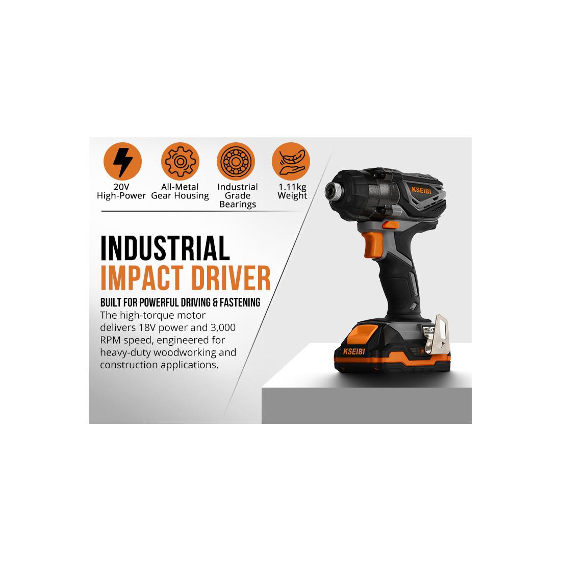 Equipado con un portabrocas hexagonal de 1/4", este atornillador permite cambios rápidos de puntas, optimizando el tiempo de trabajo. Su diseño sin cable proporciona la libertad de movimiento necesaria para trabajar en espacios reducidos o en ubicaciones sin acceso directo a una fuente de energía. Este modelo se entrega como unidad básica, compatible con baterías de 20V (no incluidas), lo que lo hace ideal para quienes ya cuentan con herramientas KSEIBI de la misma plataforma.