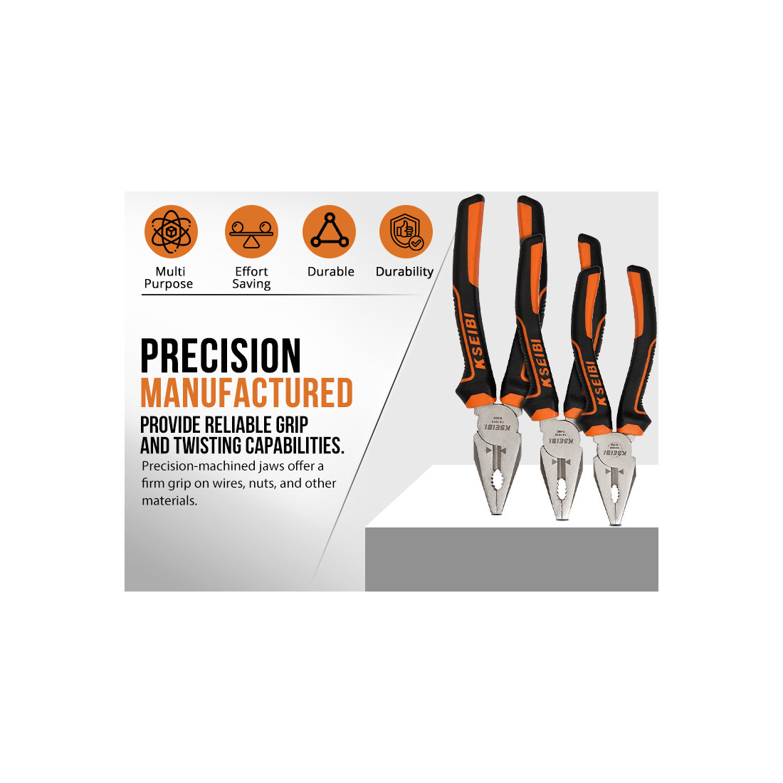Empacados en una práctica tarjeta colgante, los alicates combinados de KSEIBI son una elección confiable para profesionales de la industria y usuarios que valoran herramientas de calidad que cumplen con los más altos estándares.