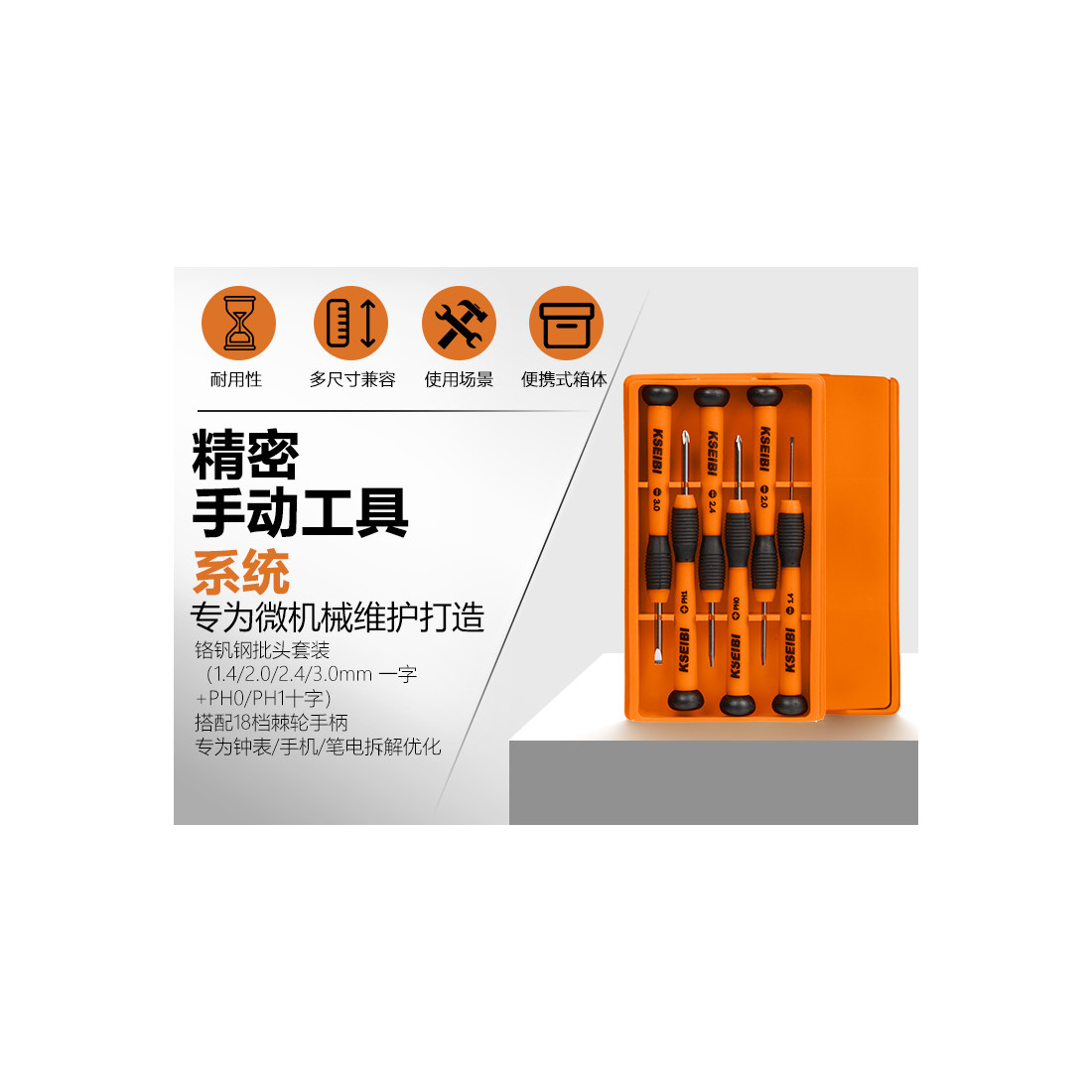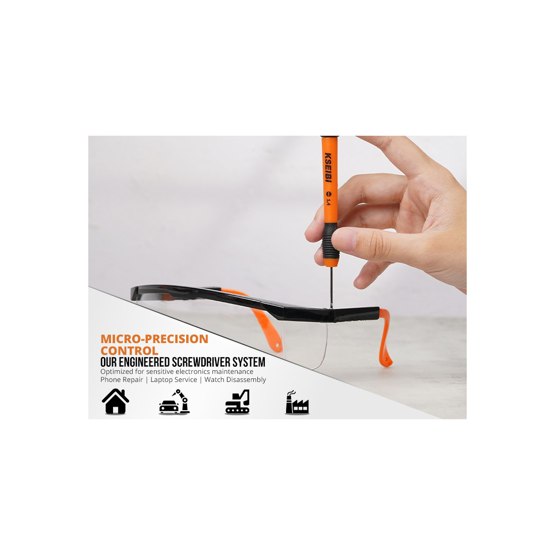 Diseñado para profesionales y técnicos que trabajan en electrónica, relojería o reparación de dispositivos, este set combina precisión y funcionalidad en un formato compacto y práctico. Empaquetados en una tarjeta blister, estos destornilladores están listos para acompañarte en cualquier proyecto que requiera atención al detalle. Con **KSEIBI**, puedes confiar en herramientas que cumplen con sus promesas de calidad, precisión y fiabilidad.
