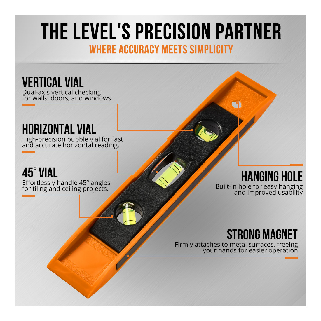 Nivel torpedo magnético con tres niveles pm 22 9"22cm — Precisión confiable | Rendimiento que inspira confianza