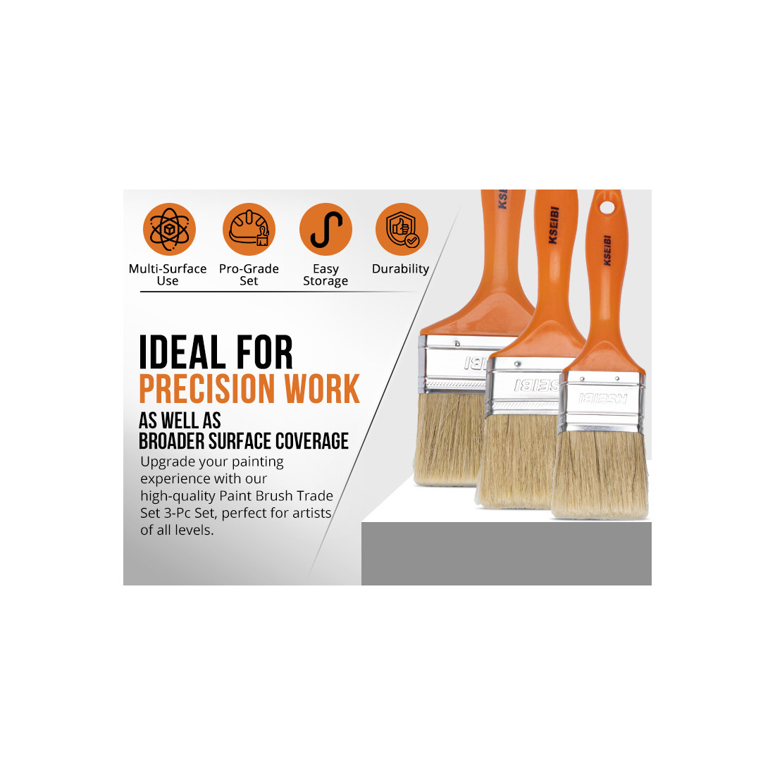 El Juego de 3 Pinceles de Pintura Profesional KSEIBI está diseñado para facilitar una amplia variedad de tareas de pintura con resultados limpios y uniformes. Cada pincel cuenta con un