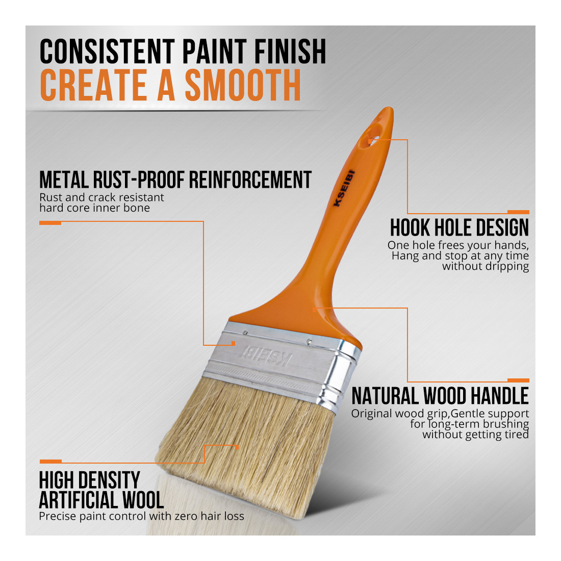 La fiabilidad y precisión de KSEIBI se reflejan en este conjunto de pinceles, convirtiéndolo en una herramienta esencial para quienes buscan un acabado impecable en cada proyecto.