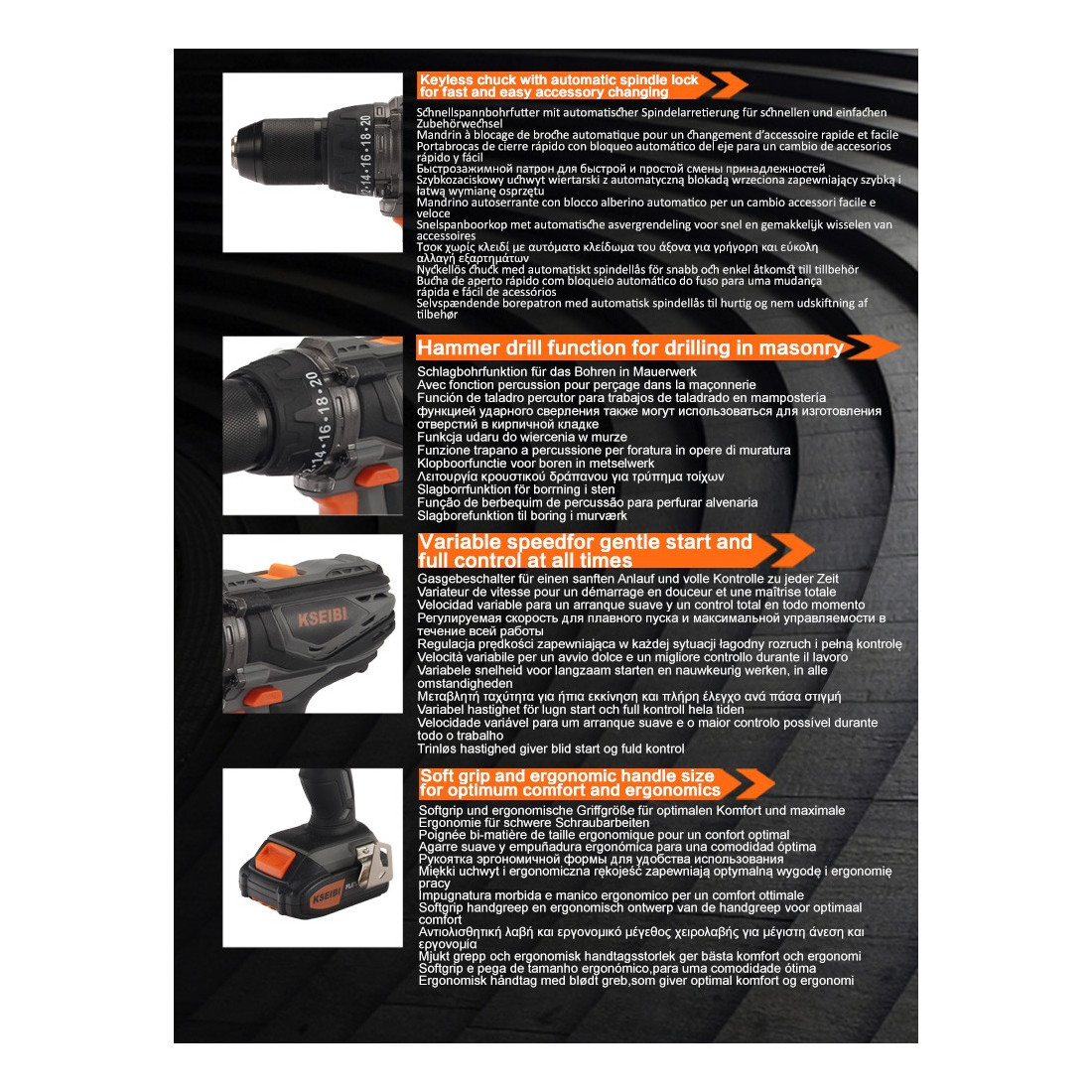 KSEIBI Taladro Inalámbrico 20V + 2 Baterías