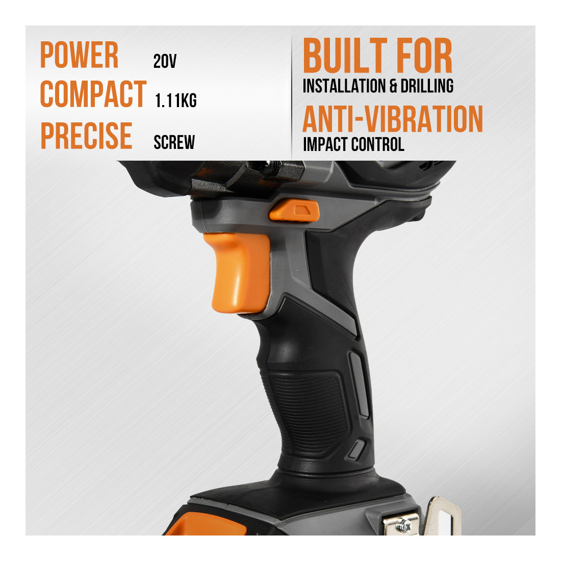 دریل تأثیری بیسیم ۲۰ ولت-۱۶۰، ۱/۴ اینچ، بدون باتری — قدرت بینظیر | اعتماد در هر پروژه سختکوشانه