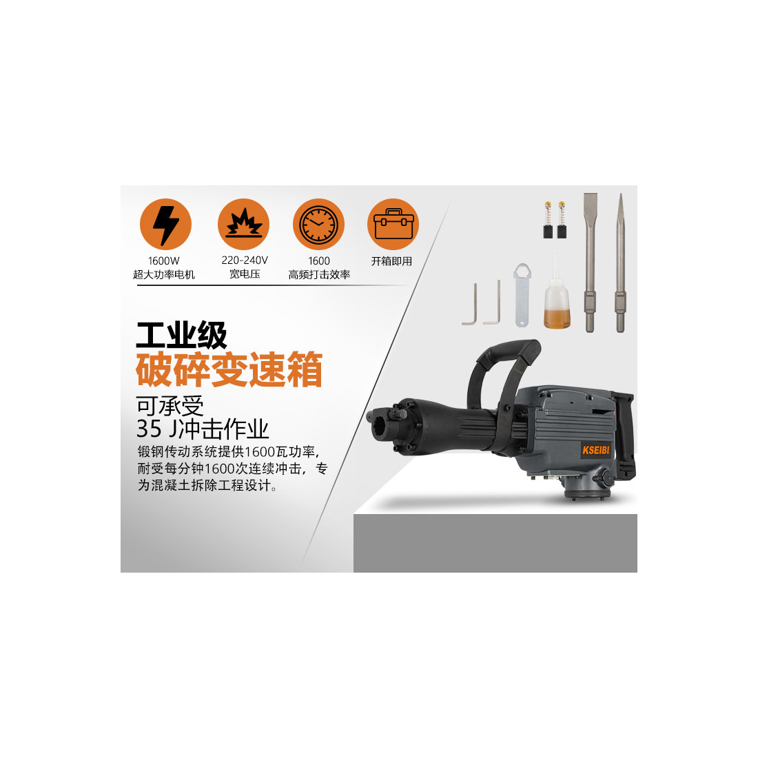 - موتور قدرتمند با توان 1600 وات برای تخریب سریع و مؤثر.