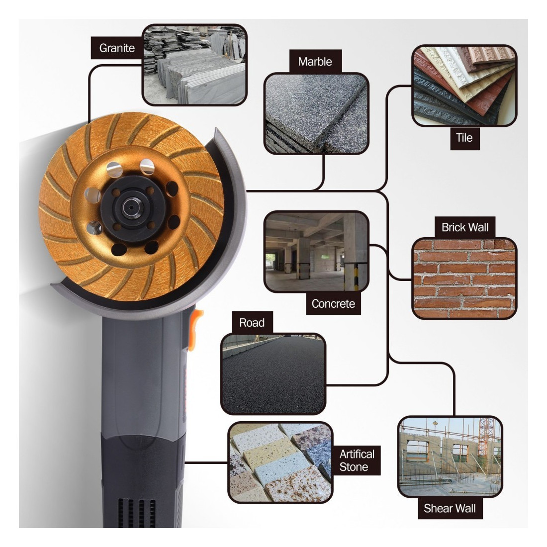 - عملکرد برتر در سایش سطوح سخت مانند بتن، سنگ و سرامیک