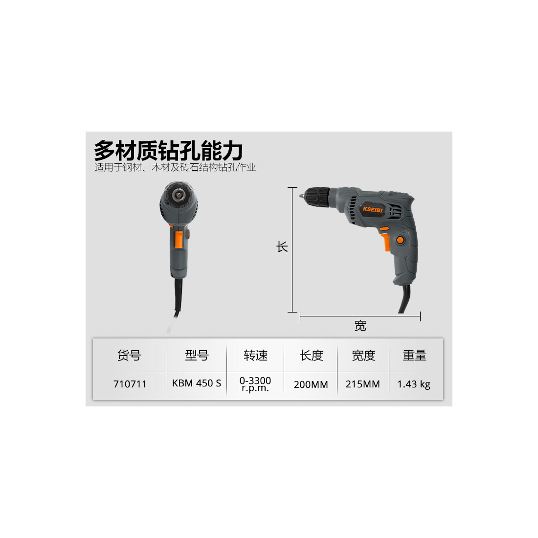 - KBM 450 S, Perceuse électrique 10mm sans clé, 450W