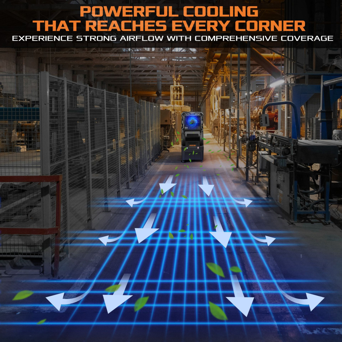 Il s’adresse aux ateliers, entrepôts, garages, chantiers, zones de chargement, événements en plein air et serres, partout où la ventilation classique ne suffit pas. Par son efficacité, sa robustesse et son faible coût d’exploitation, ce modèle s’intègre naturellement aux besoins B2B qui exigent fiabilité et performance au quotidien.