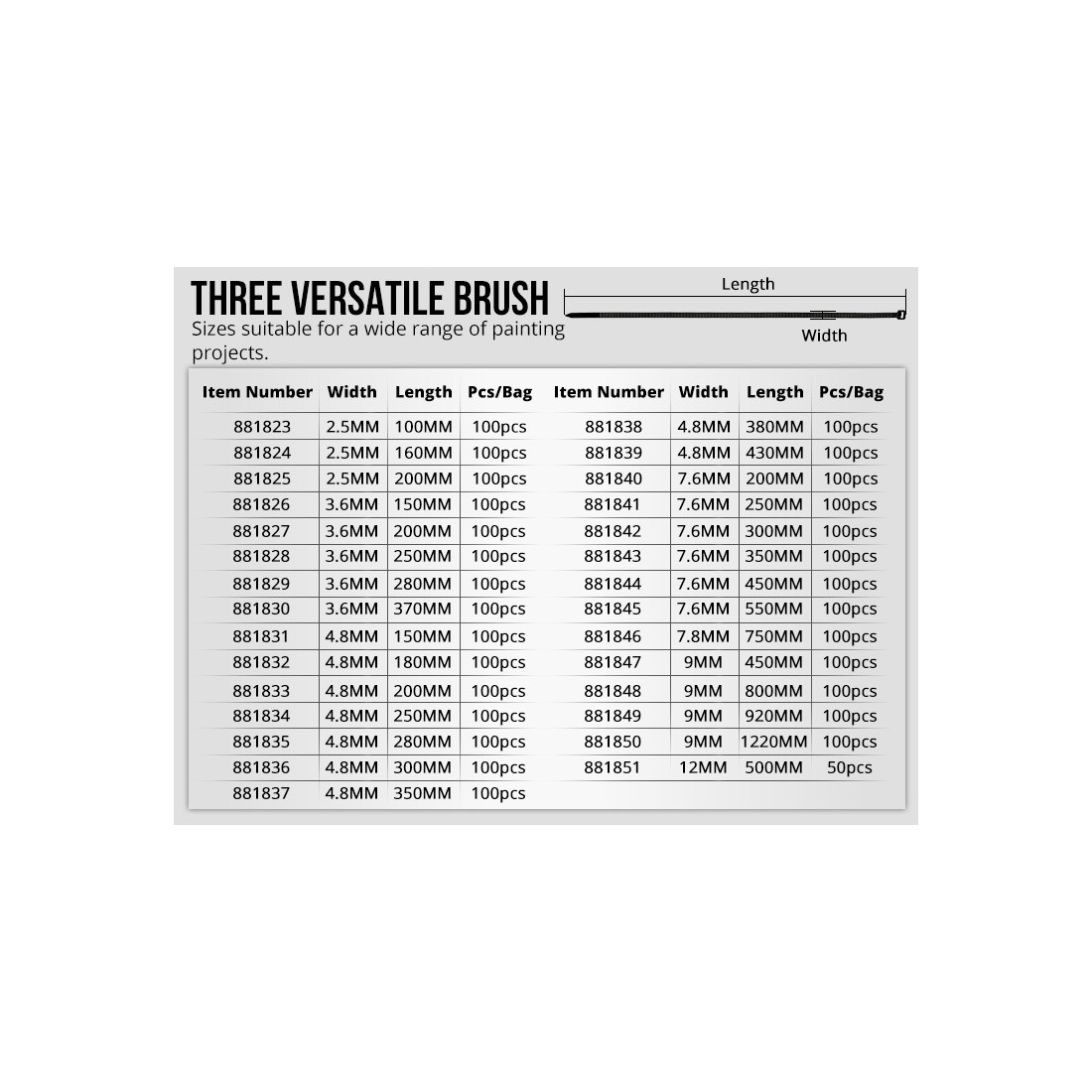 Tailles : 4.8 x 250mm | 4.8 x 350mm | 7.6 x 200mm | 7.6 x 350mm | 7.6 x 750mm | 9 x 920mm | 2.5 x 100mm | 3.6 x 150mm | 3.6 x 280mm | 4.8 x 180mm | 4.8 x 280mm | 4.8 x 380mm | 7.6 x 250mm | 7.6 x 450mm | 9 x 450mm | 9 x 1220mm | 2.5 x 160mm | 3.6 x 200mm | 3.6 x 370mm | 4.8 x 200mm | 4.8 x 300mm | 4.8 x 430mm | 7.6 x 300mm | 7.6 x 550mm | 9 x 800mm | 12 x 500mm | 2.5 x 200mm | 3.6 x 250mm | 4.8 x 150mmSerre-câbles en nylon noirs