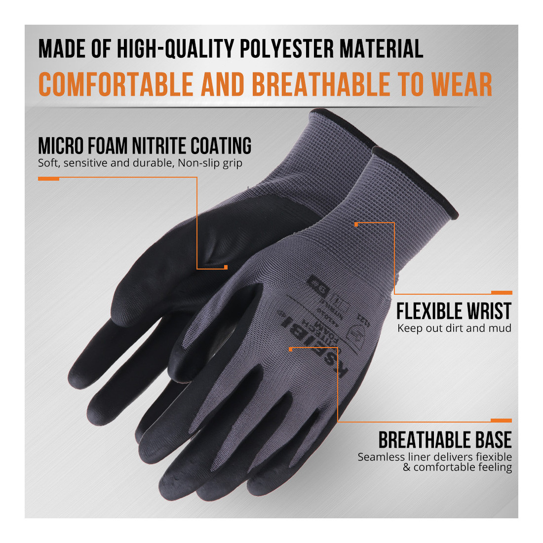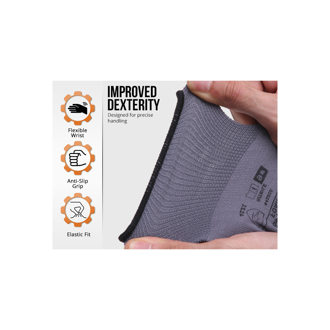 Conçus pour répondre aux besoins des professionnels, ces gants sont parfaitement adaptés aux applications industrielles telles que l'assemblage, la manutention, ou les travaux mécaniques. Leur légèreté et leur ajustement confortable permettent une utilisation prolongée sans gêne, tout en assurant une grande sensibilité tactile pour les tâches nécessitant une précision particulière.