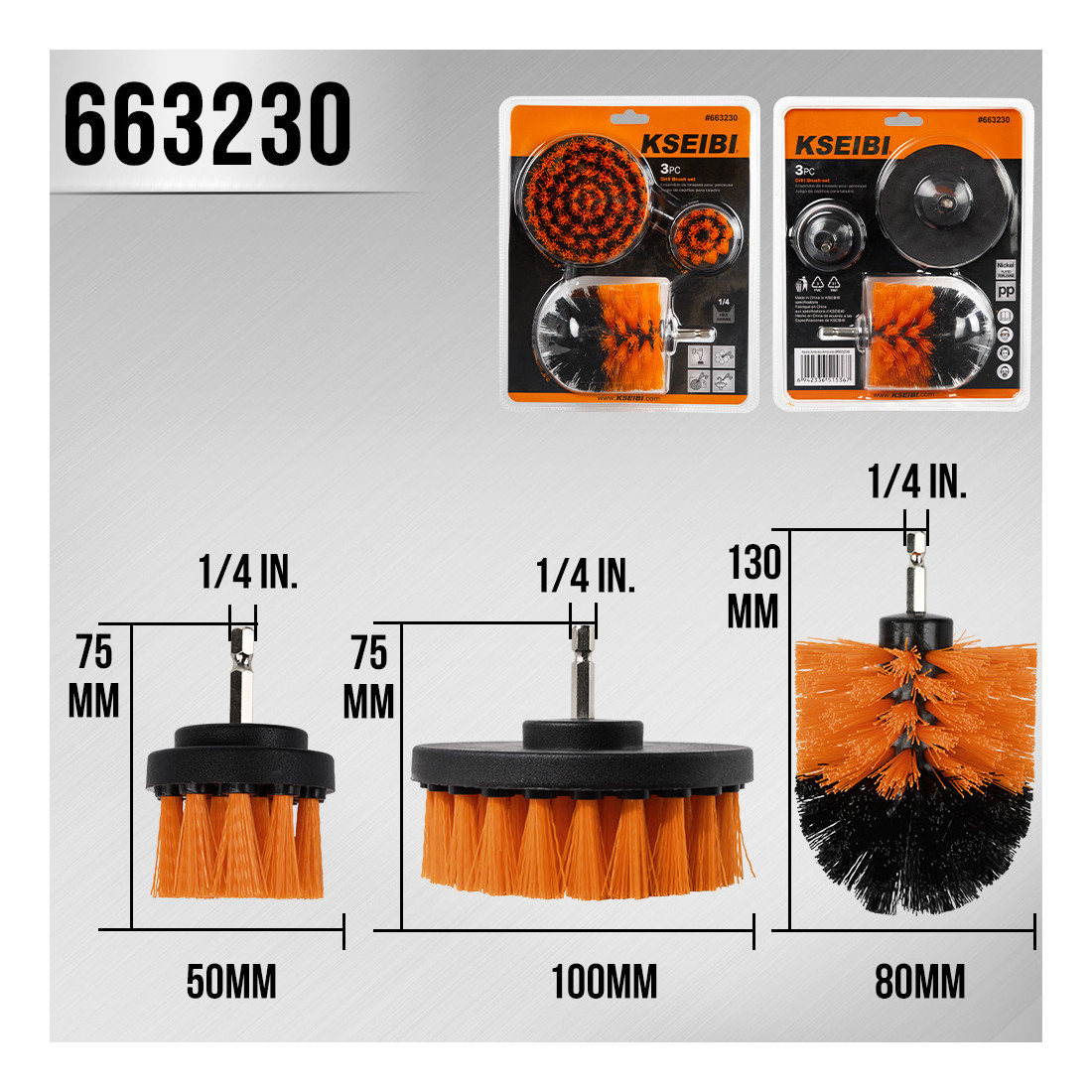 KSEIBI Set 3 pz Spazzole per pulizia per trapano, attacco esagonale 1/4"