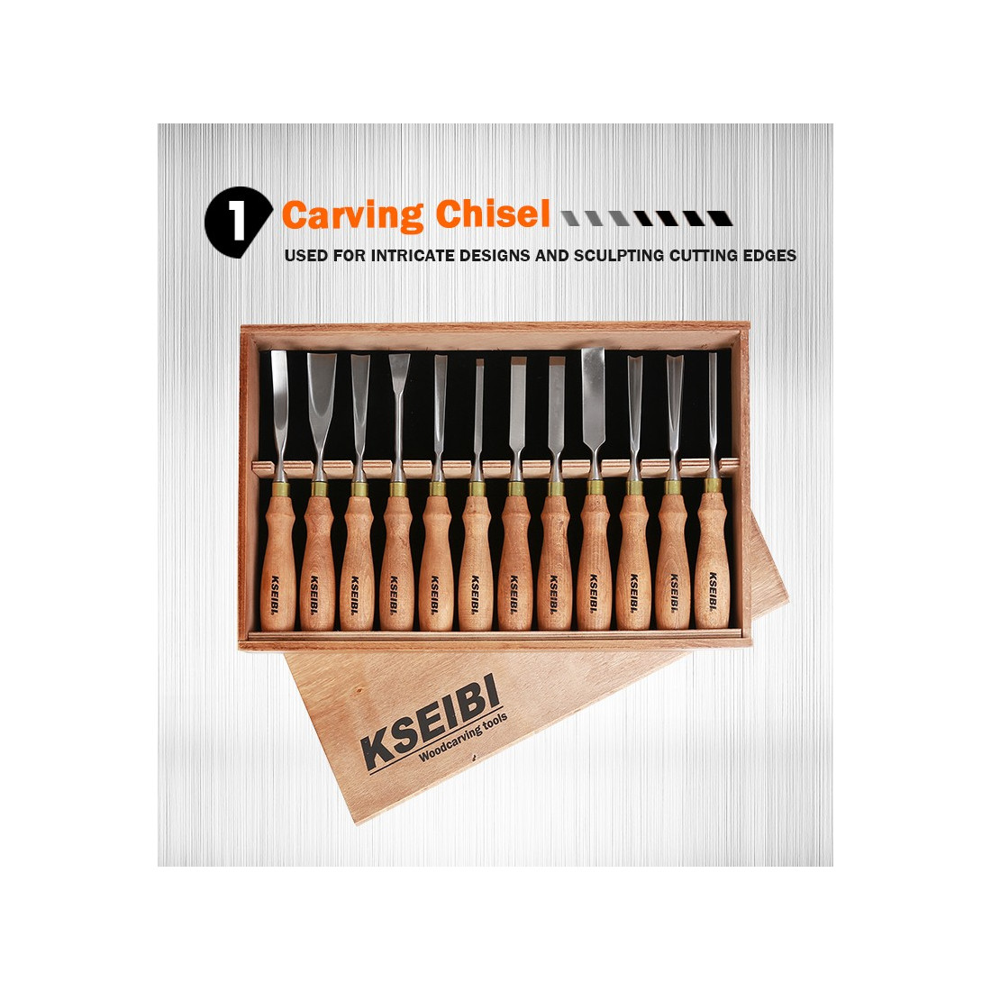 KSEIBI Industrial Wood Craving Chisel Set Wooden Handle 12-Pc.