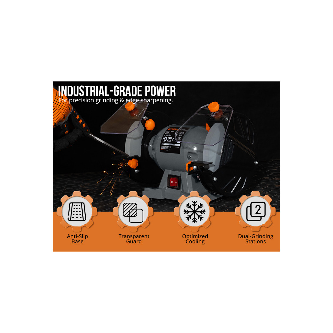 KBG 15-150, ベンチグラインダー 150mm 150W — 堅牢な信頼性 | 長く使える作業のパートナー