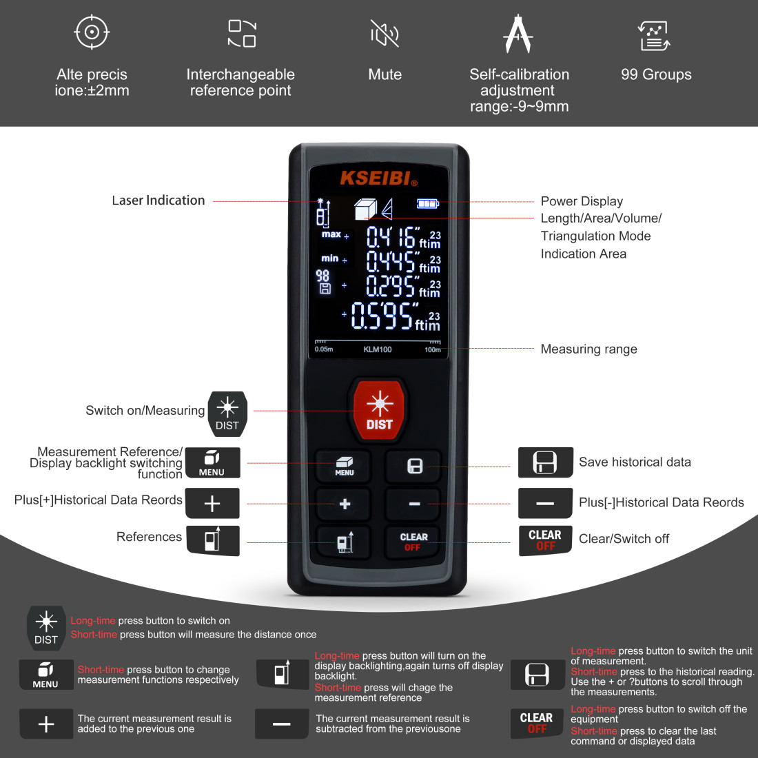 Seja para calcular distâncias, áreas ou volumes, este medidor a laser entrega eficiência e confiabilidade. A qualidade e durabilidade características da marca KSEIBI garantem que o Klm 50 seja um investimento seguro para profissionais que não podem se dar ao luxo de imprecisões em suas medições.
