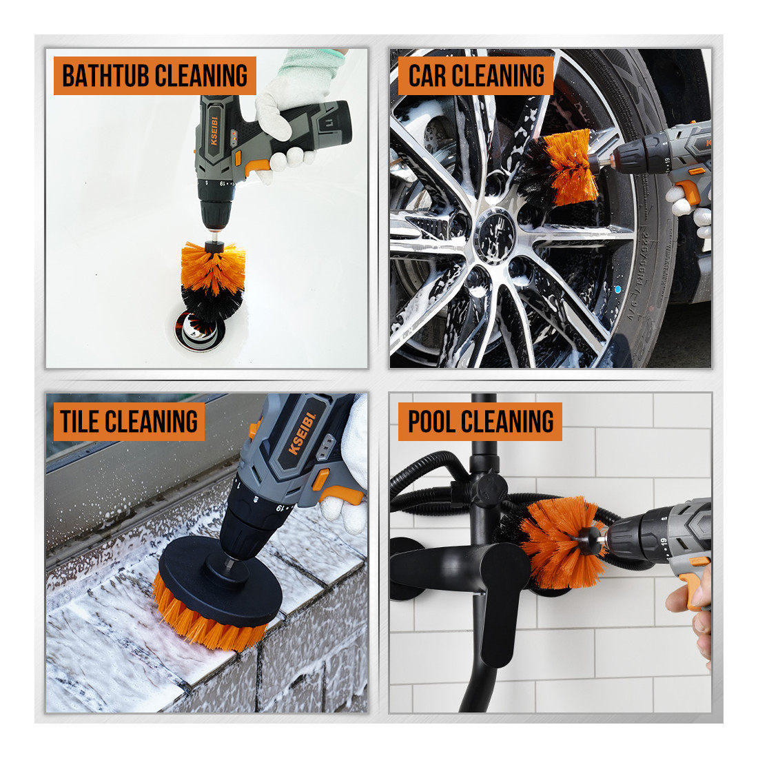 As cerdas em nylon resistente suportam uso intenso e não riscam a maioria das superfícies, enquanto a base em polímero reforçado e a haste hexagonal de 1/4" garantem acoplamento firme e troca rápida. Funciona bem em cerâmica, rejunte, pedra, concreto aparente, fibra de vidro, pneus, tapetes automotivos e mobiliário externo.