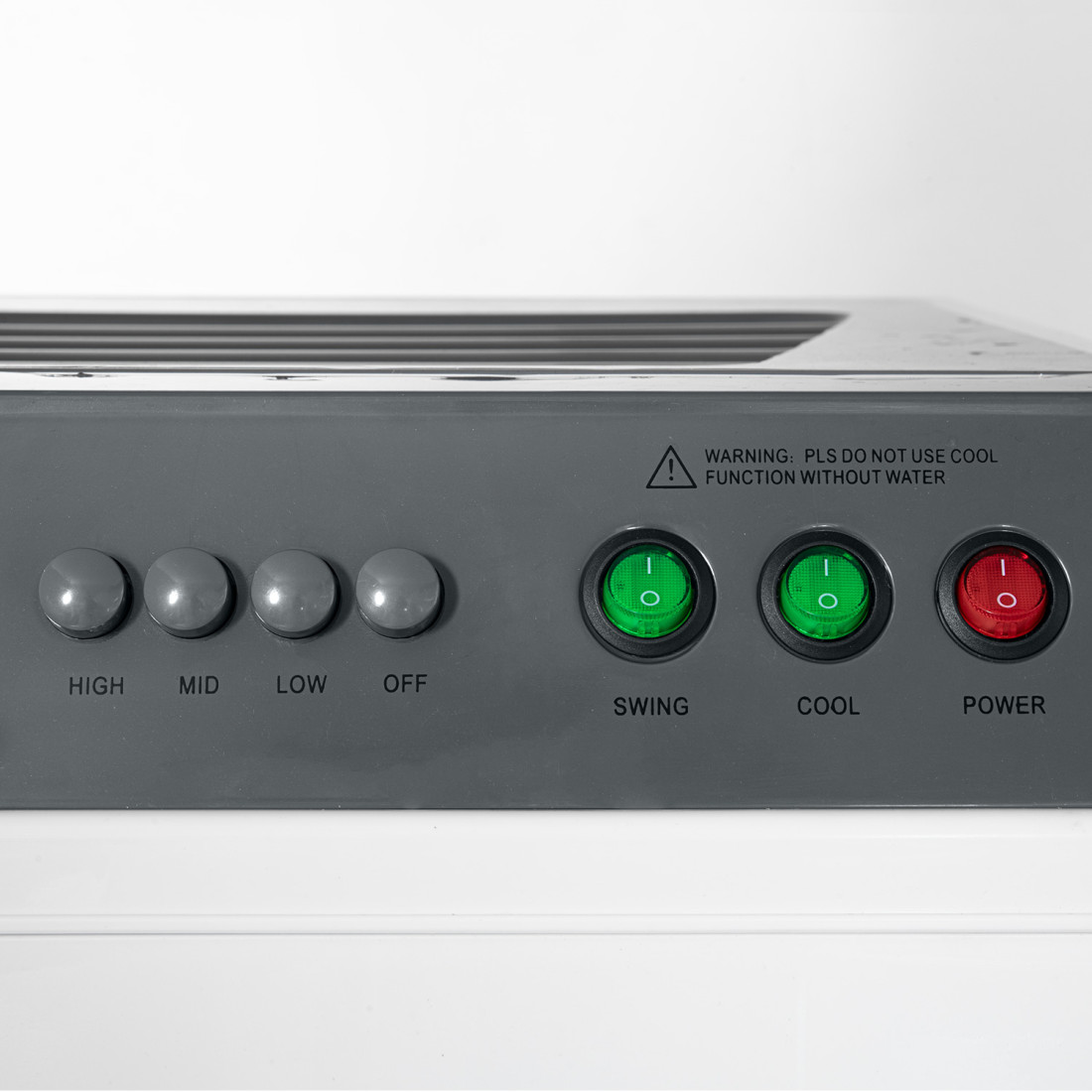 Construit cu durabilitatea și fiabilitatea caracteristice brandului KSEIBI, răcitorul este ușor de transportat și poziționat, fiind o alegere practică pentru spații mari sau zone cu circulație intensă. Sistemul de răcire lichidă optimizează consumul de energie și asigură o distribuție uniformă a aerului răcorit, reducând disconfortul termic.