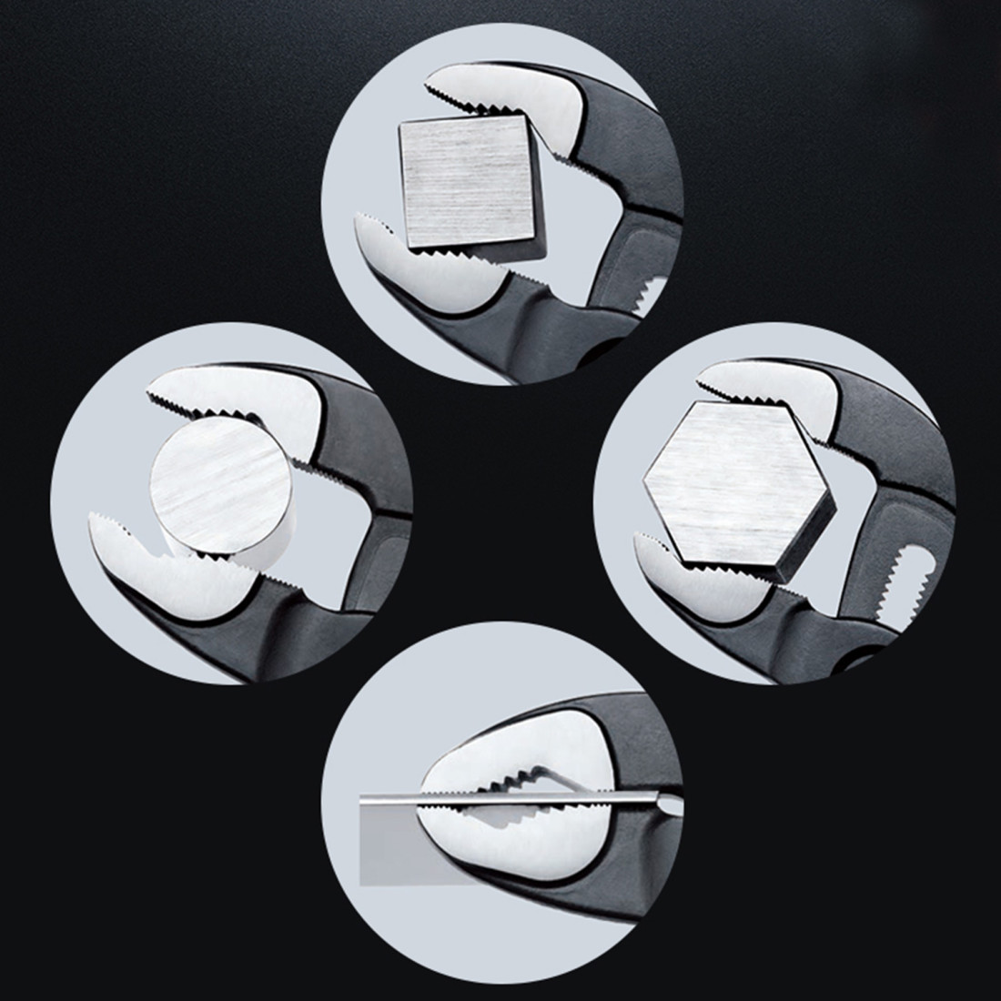 Datorită mecanismului de articulație tip box, cleștii asigură o stabilitate excelentă în timpul utilizării, reducând riscul de alunecare. Funcția de eliberare rapidă permite ajustarea rapidă și ușoară a dimensiunii, economisind timp și simplificând intervențiile. Finisajul negru nu doar că adaugă un aspect profesional, dar contribuie și la protecția împotriva uzurii.