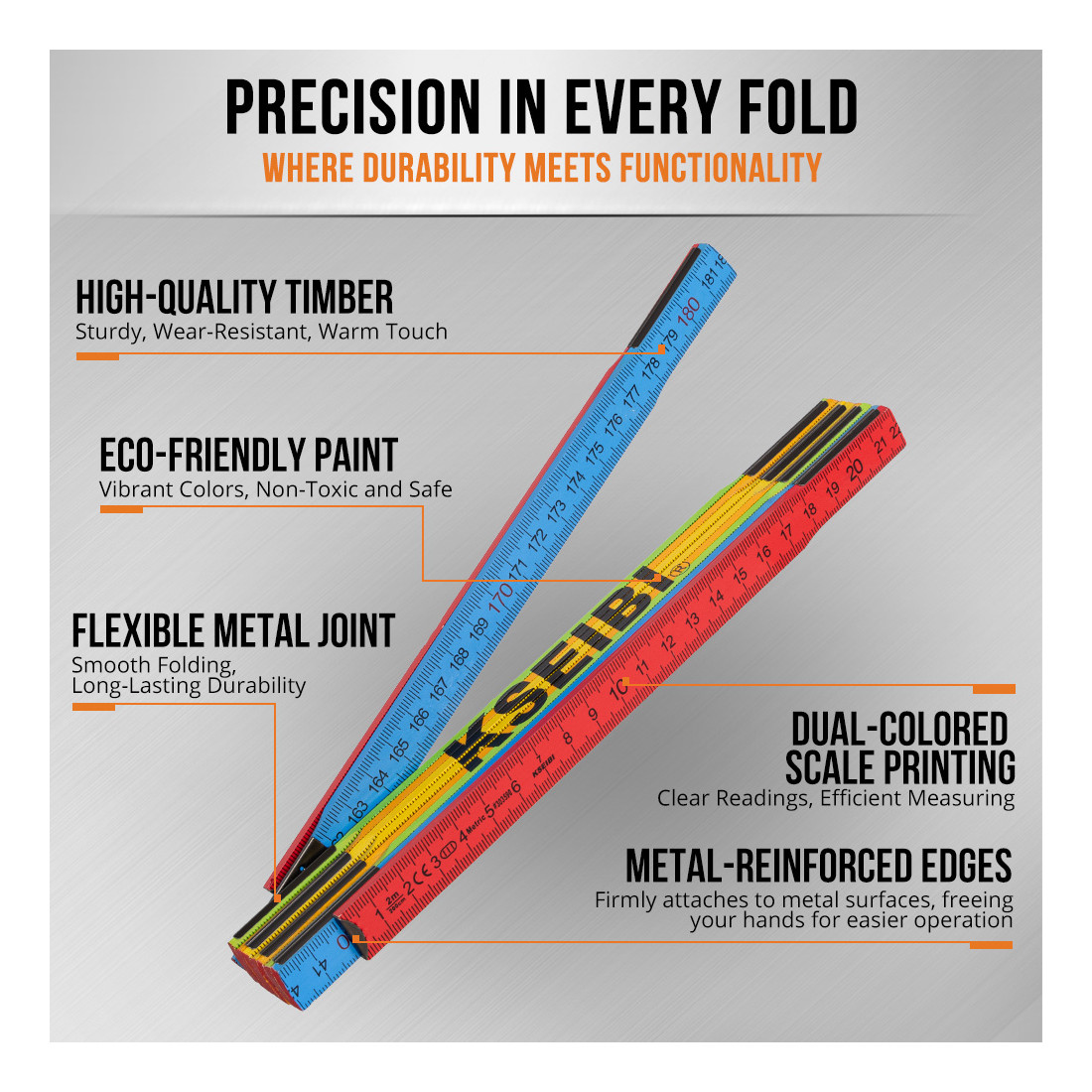 Riglă de lemn pliabilă KSEIBI este o alegere fiabilă pentru profesioniștii care au nevoie de un instrument de măsurare precis, durabil și ușor de utilizat. Ambalată pe un suport de tip hanging card, este gata să fie accesibilă și la îndemână oriunde este necesar.