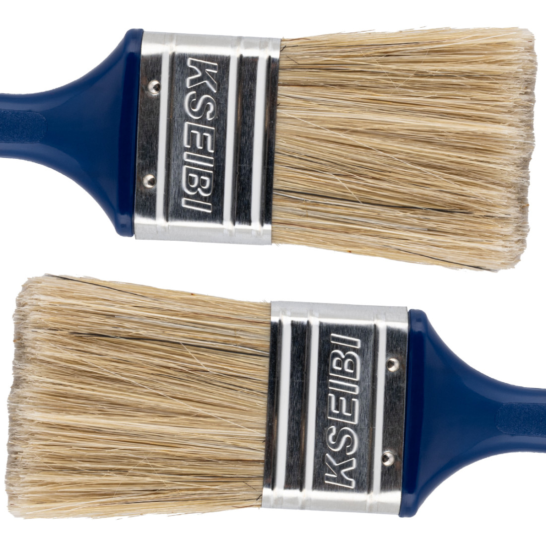 Кисть для краски с пластиковой ручкой от KSEIBI — это надежный инструмент для аккуратного и равномерного нанесения краски. Белая щетина обеспечивает гладкое покрытие, минимизируя потеки и разводы, а темно-синяя пластиковая