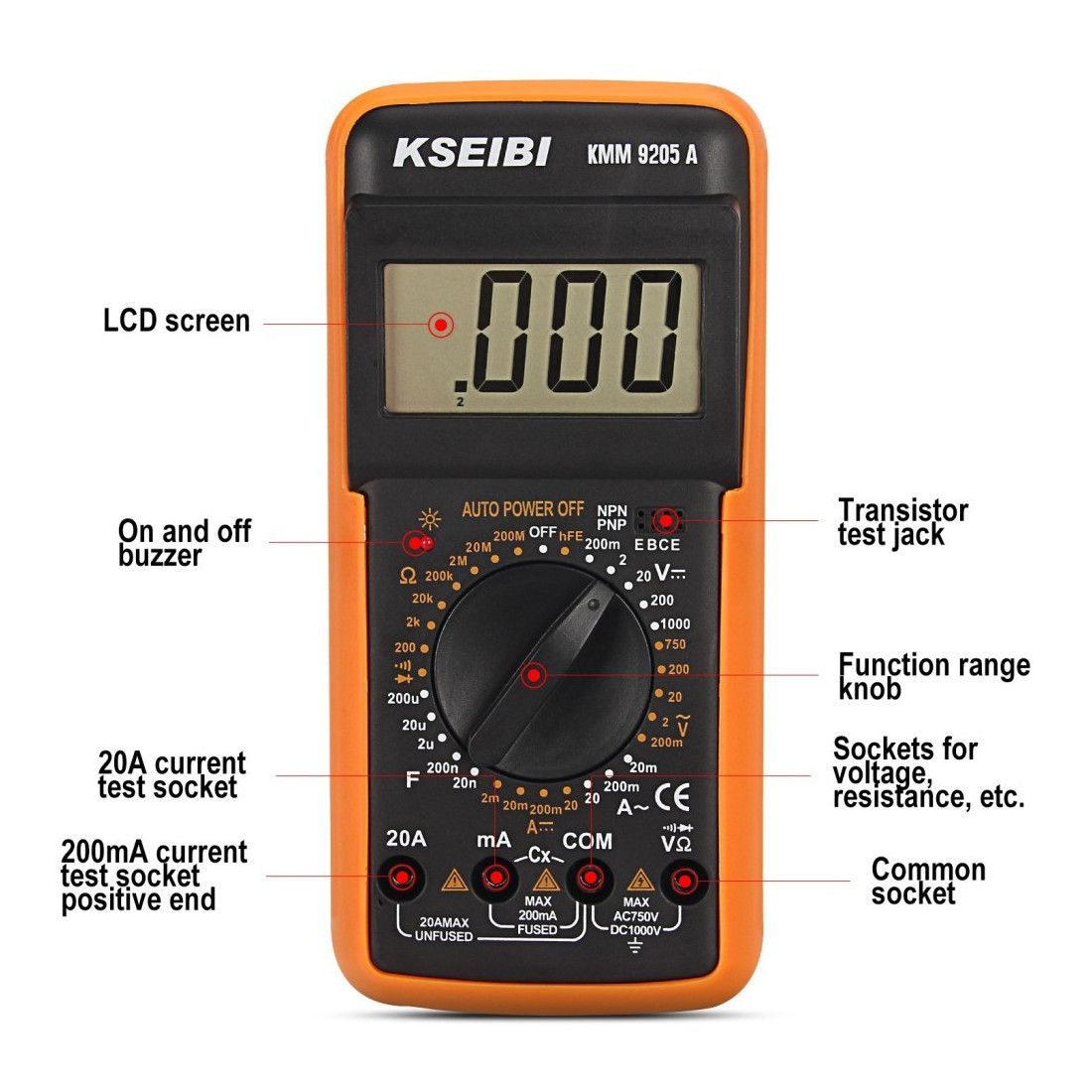 measures resistance, voltage, current, frequency, and other qualities of electric-powered items.