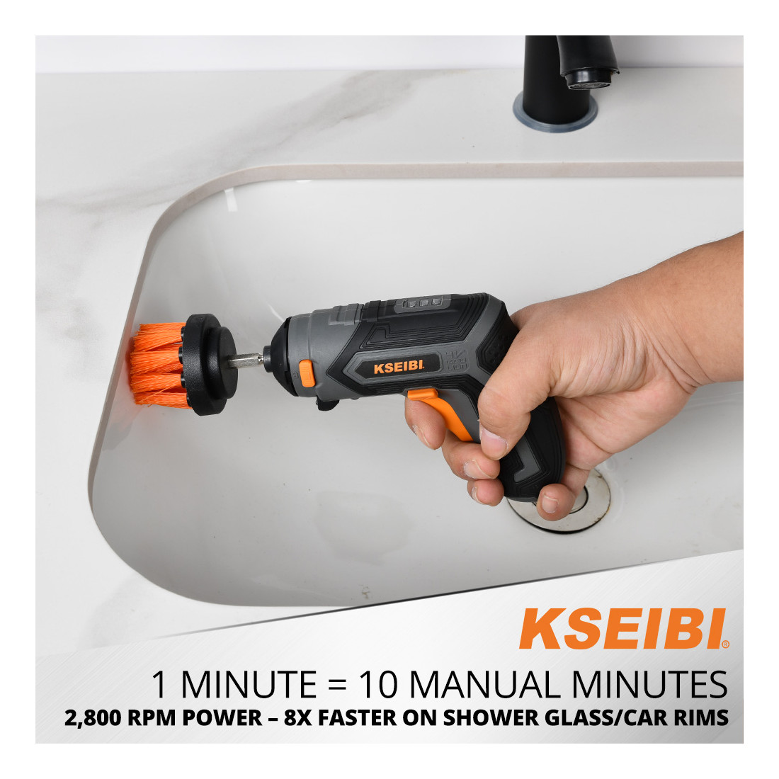 KSEIBI 1/4英寸六角柄电钻清洁刷套装(3支)为日常与重污清洁提供高效动力。三种刷头覆盖平面、边角与曲面:圆盘刷适合瓷砖地面与石材台面,圆弧刷进入盆槽、轮毂和转角,短毛硬刷用于缝隙与顽渍点位。接入任何标准1/4英寸六角夹头的有线或无线电钻即可使用,安装迅速,扭矩传递稳固。...